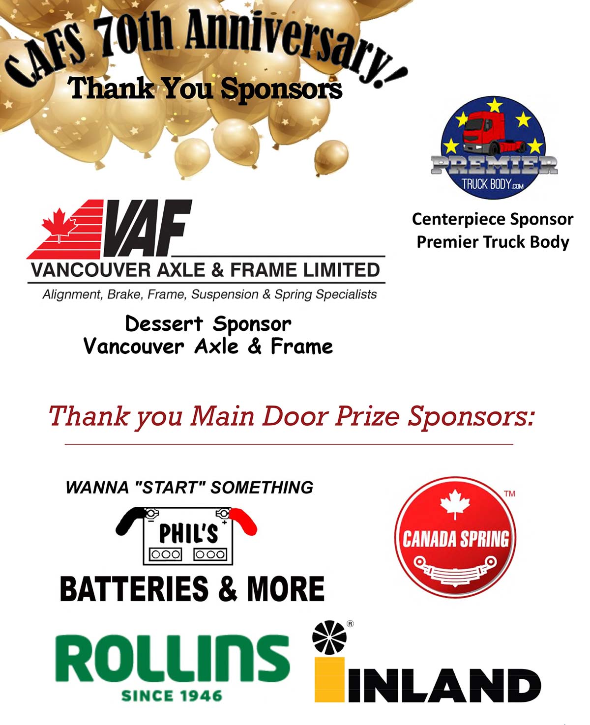 Thank you to the many who sponsor and contribute to CAFS meetings and events, your contributions help make these events affordable and enjoyable for all the attendees and membership.